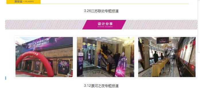 江蘇安又琪聯動與3.12漯河之夜活動專題報道劃分為啟動巡禮、店面大展、宣傳推廣、瘋狂成交、員工風采、一戰到底、我在現場等不同的板塊,從店面宣傳推廣與戶外廣告投放宣傳,終端導購精氣神貌,到成交曬單與設計師現場活動,專題報道都通過圖片或文章或視頻進行詳細介紹,極盡全面地為消費者、經銷商展現活動的相關信息。
